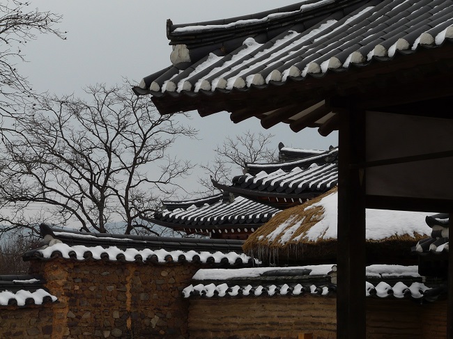 Le paysage hivernal coréen et sa houle de montagnes grises semble abattu. Bardé de routes, tissé de fils électriques, labouré au bulldozer, il est souvent monotone, terne et déprimant. Mais parfois, au détour d'un chemin, le voyage vous accorde